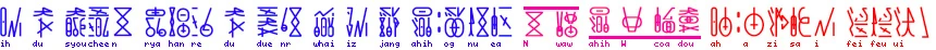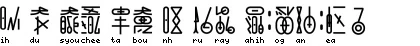 Officially, the development staff at Gust Inc. use a special program to write the parts in the Emotional Song Pact font in order to create the letter clusters, which can be accessed through the official Wiki located in the genomirai.com website. There are also an unofficial program that also creates the clusters through bitmaps, an unofficial font and dictionary and font file that makes use of Windows' EUDC feature to write the clusters. The unofficial font is readily available at this very Wiki, as it is used to display the letter clusters properly.[2] The letters that form the Emotional Song Pact alphabet in their normal (standalone) forms can be seen in the image below: