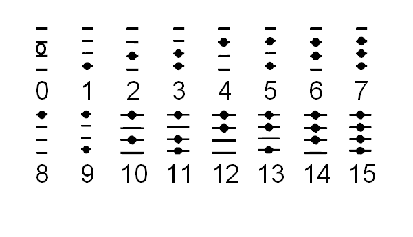 In this pattern, the glyphs are stacked in a column, and are read from bottom to top.