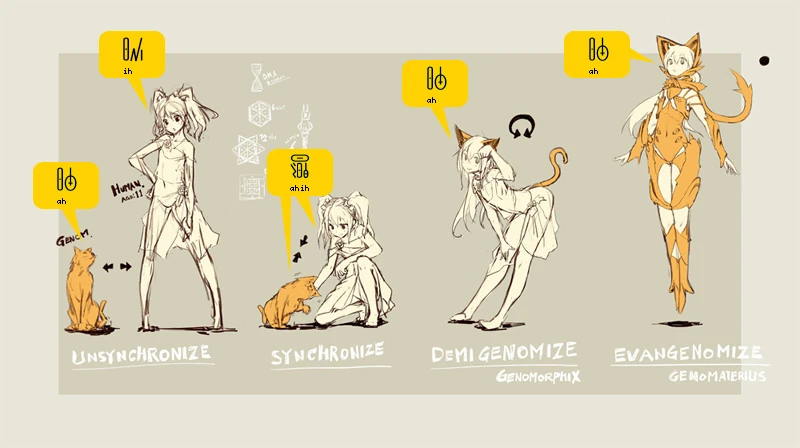 These are the conditions the Genoms call [Synchronization], [Perfect Synchronization] and [Chain], and since these are what we could call the result of a fusion of sorts, their definition of self changes whenever they are under one of these conditions.